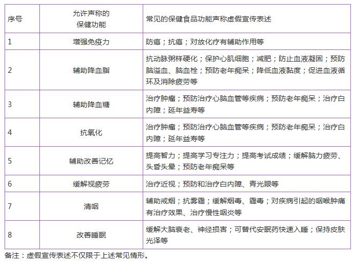 常見的保健食品功能聲稱虛假宣傳表述