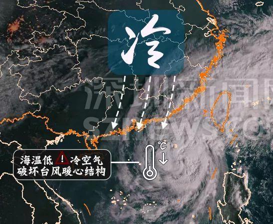 深圳市氣象局發(fā)布的冷空氣和海溫破壞臺風結(jié)構(gòu)示意圖