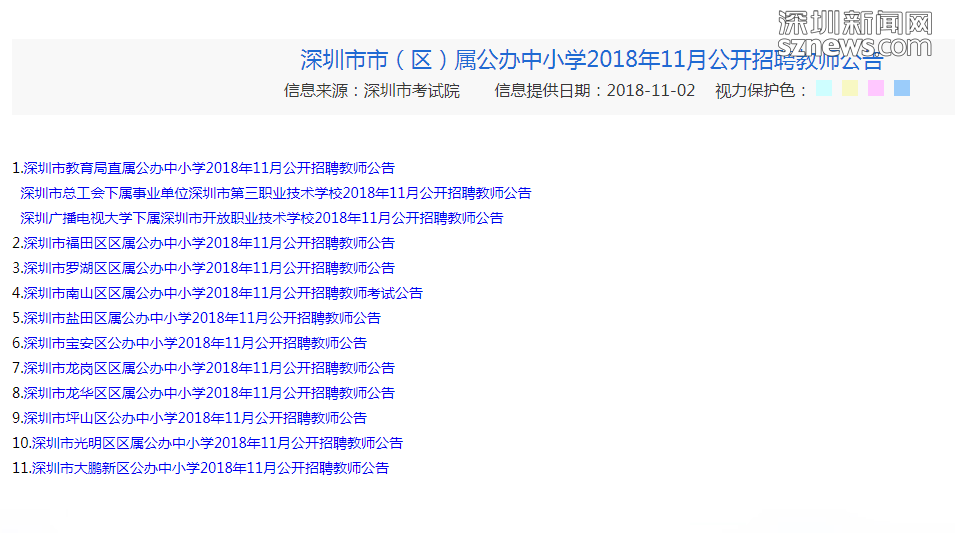深圳市市(區(qū))屬公辦中小學(xué)2018年11月公開(kāi)招聘教師公告