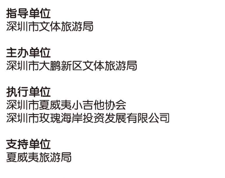 大鵬新區(qū)擁有相對豐富的尤克里里音樂文化底蘊(yùn),新區(qū)音樂學(xué)科自2015年已經(jīng)與深圳市夏威夷小吉他協(xié)會開展合作,為全區(qū)音樂教師開展尤克里里師資培訓(xùn)至今,在全國中小學(xué)音樂教師體系率先開展尤克里里課程。本屆大鵬的嘉年華將會為大鵬的學(xué)校,社區(qū)帶來更多的資源,與更多國際尤克里里協(xié)會,知名演奏家交流與互動,讓這種浪漫自由的樂器能在新區(qū)扎根發(fā)芽,開花結(jié)果,將新區(qū)打造成中國的“尤克里里之鄉(xiāng)”。