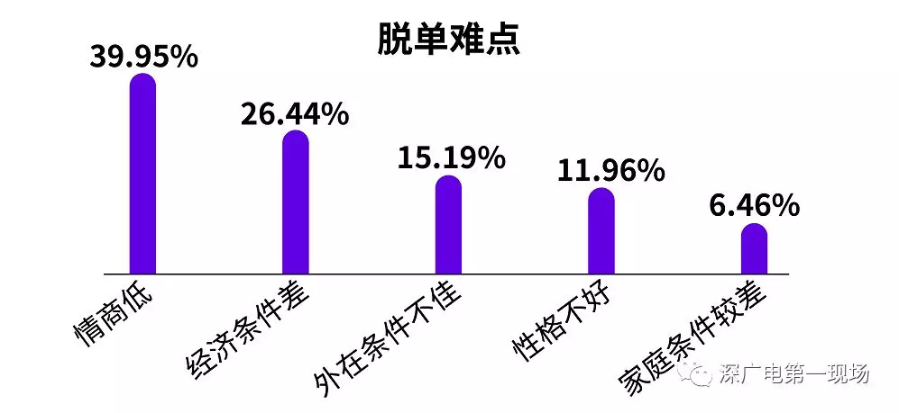 脫單難點中的經(jīng)濟壓力層面分析發(fā)現(xiàn),生活成本過高是影響脫單的最大單身壓力,其次是買房壓力,原生家庭負擔重以及戀愛成本過高。