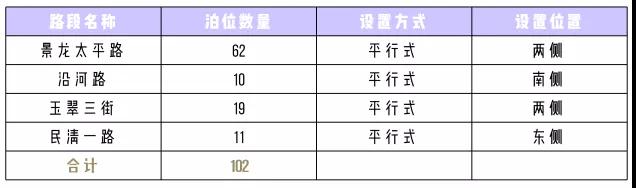 其中,桂月路擬設置泊位60個,樟閣路設置39個,榮福路設置112個,溢佳路設置59個,新丹路設置100個,福慶路設置27個,翠幽路設置79個,景龍?zhí)铰吩O置62個,沿河路設置10個,玉翠三街設置19個,民清一路設置11個,華天路設置47個,永樂路設置21個,簡上路設置63個,上芬小學路設置18個,新牛路設置21個,油聯(lián)路設置18個,黎光工業(yè)路設置22個。總共788個“宜停車”泊位。