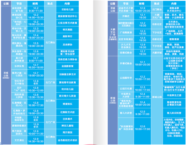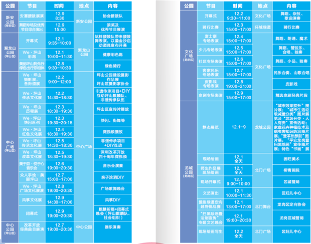2018深圳公園文化季將延續(xù)往屆經(jīng)典品牌節(jié)目,滿足不同受眾的多元需求,推出兒童音樂劇、世界極限運(yùn)動(dòng)表演、燃動(dòng)鵬城2018福田文創(chuàng)音樂周、全國航空模型公開賽、戲曲專場等活動(dòng)。同時(shí)結(jié)合各公園特點(diǎn),打造中心公園風(fēng)箏表演、翠竹公園首屆竹文化音樂會(huì)、皇崗公園非遺主題展、梅林公園社區(qū)展演、筆架山公園“深港穗”草地滾球賽等公園特色文化活動(dòng)。