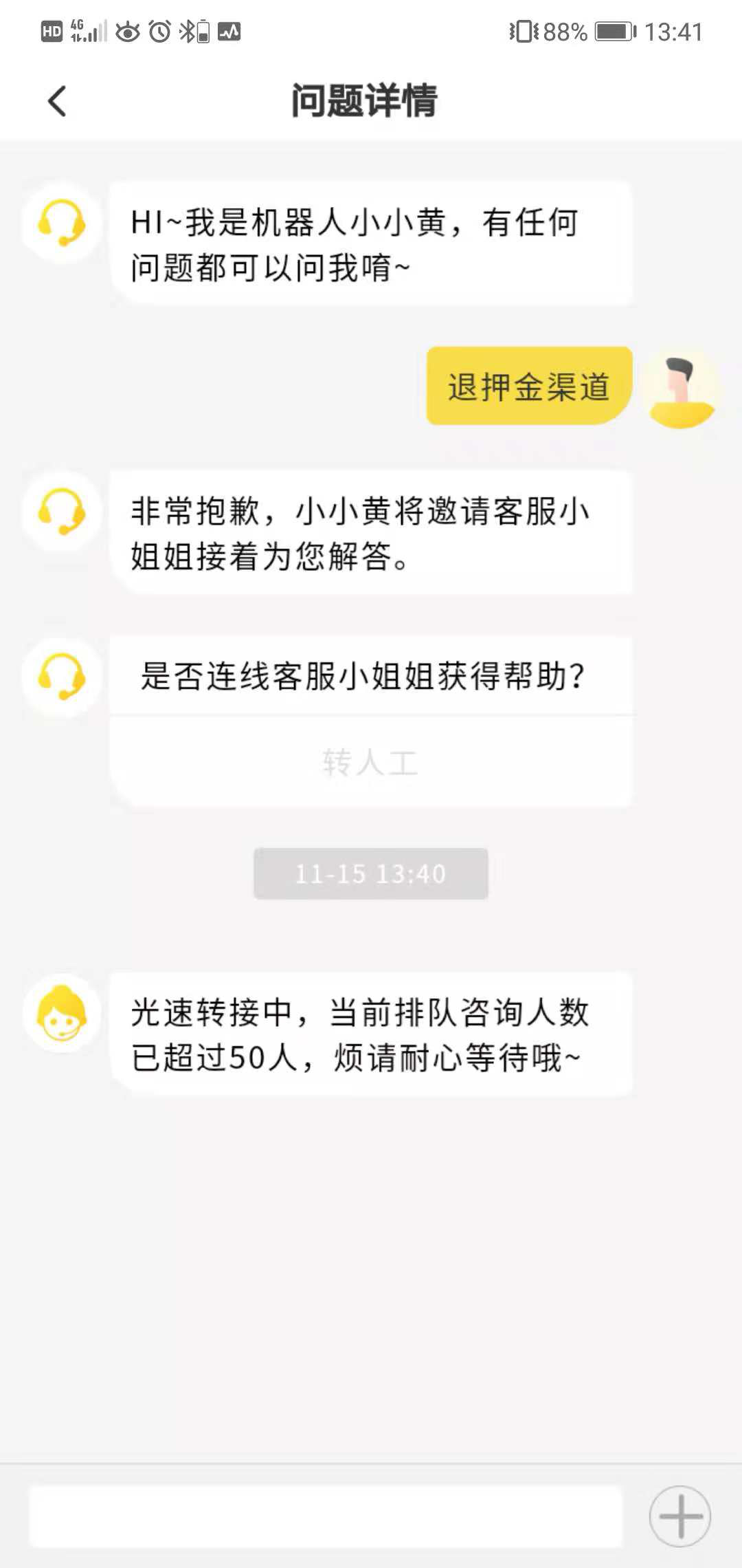 深圳特區(qū)報(bào)2018年11月16日訊“點(diǎn)人工服務(wù)永遠(yuǎn)顯示前面排隊(duì)超過(guò)50人,客服電話(huà)也打不通?!苯?有市民爆料稱(chēng),在ofo平臺(tái)退押金實(shí)屬不易。