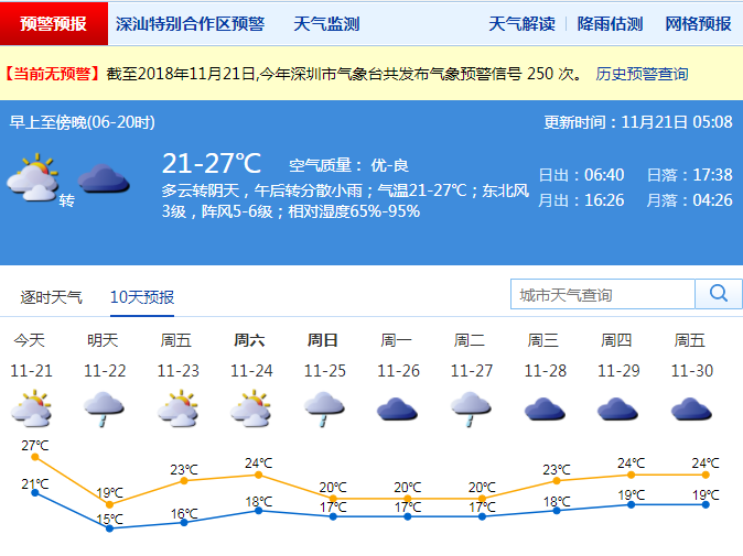 今晚中等強(qiáng)度冷空氣開(kāi)始影響深圳,明天最低氣溫降至15℃