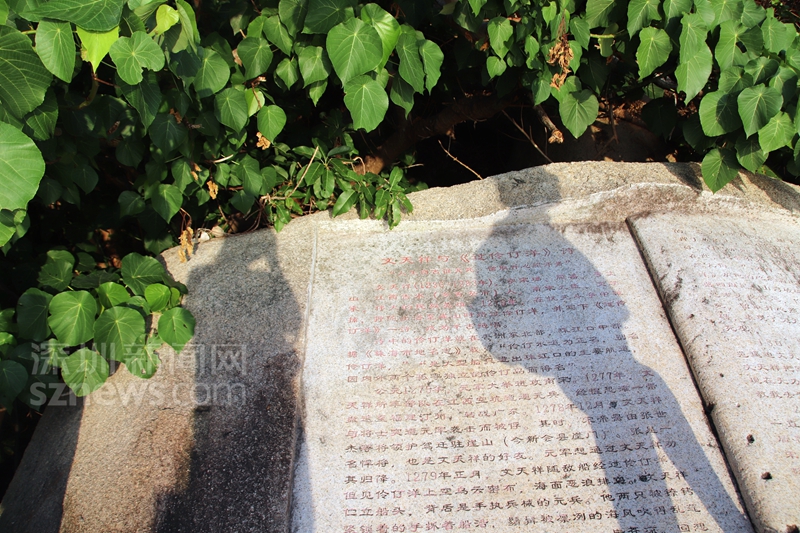 海邊棧道的大石頭刻錄文天祥與《過伶仃洋》詩歌的歷史典故