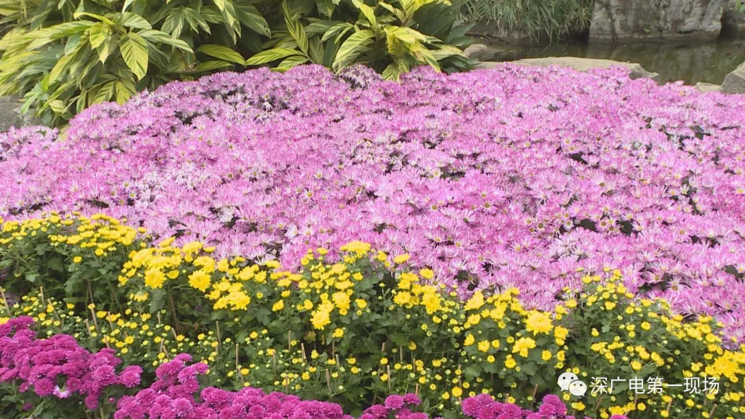東湖公園的陽(yáng)光草坪,是這次菊花展新增的布展區(qū)。在草坪中央,有一個(gè)直徑6米的大型菊花球裝置“菊開(kāi)盛世”,由6000多朵菊花層層排列綁扎而成,十分壯觀。