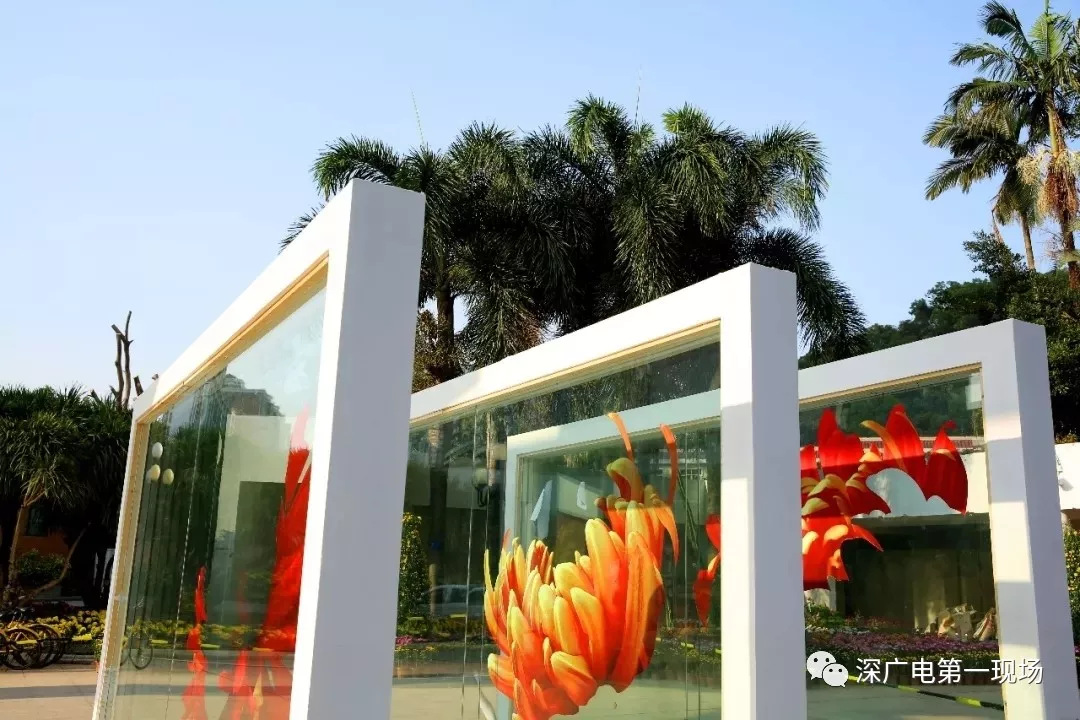 除了大型菊花球裝置外,由幾千朵菊花按序裱扎而成;釣魚(yú)區(qū)的“水上明月”,一輪由菊花裱扎而成的月牙立于水面,瑩瑩生輝;位于西大門(mén)、西門(mén)及南門(mén)的三層透視互動(dòng)菊花裝置,意趣盎然;另有鮮切花制作的內(nèi)嵌式鏤空菊花拍攝板,都是市民們觀賞打卡的必去之地。