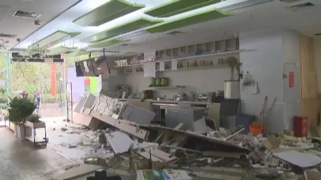 今天上午,記者來到該家飲品店,此時(shí),店里是一片狼藉,玻璃碎片散落一地,飲品店四周也拉起了警戒線。