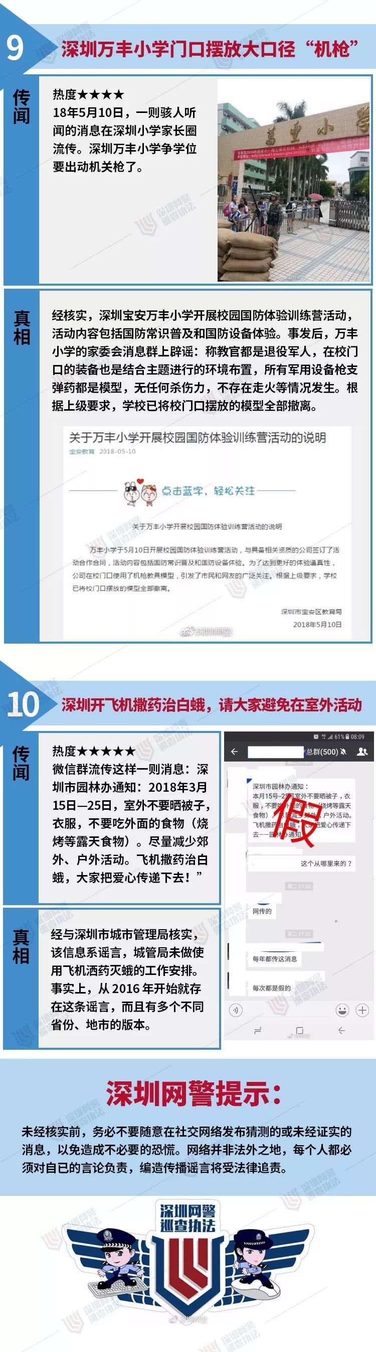 深圳網(wǎng)警提醒:網(wǎng)絡(luò)并非法外之地,每個人都必須對自已的言論負(fù)責(zé),編造傳播謠言將受法律追責(zé)。