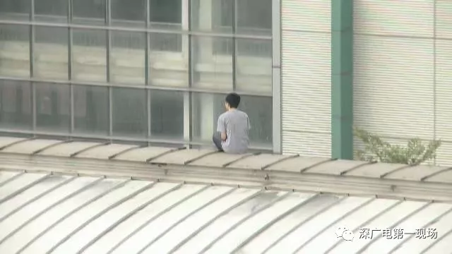 發(fā)現(xiàn)男子的進(jìn)入軌行區(qū)后,地鐵工作人員馬上聯(lián)系警方,隨后警方和消防人員也趕到現(xiàn)場,這時(shí)這名男子已經(jīng)坐在了荷坳站的頂棚上。