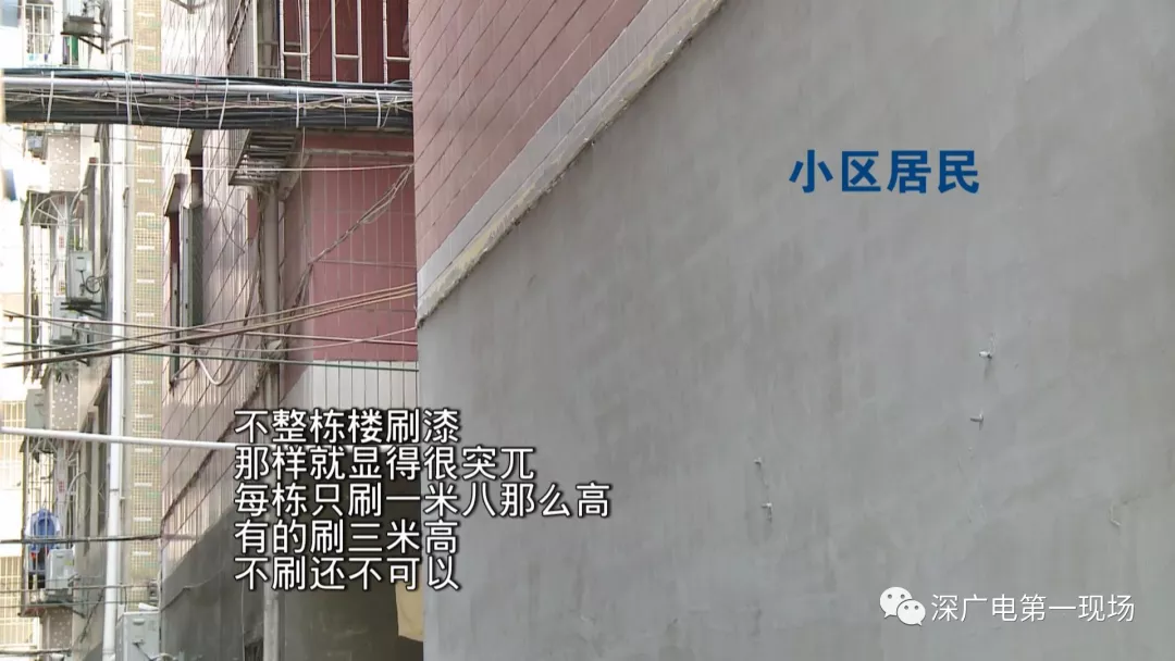 一些居民們投訴說(shuō),外墻粉刷只刷三米高,覺(jué)得很難看,如果要美化外墻,就應(yīng)該對(duì)整棟樓從上到下全部美化。