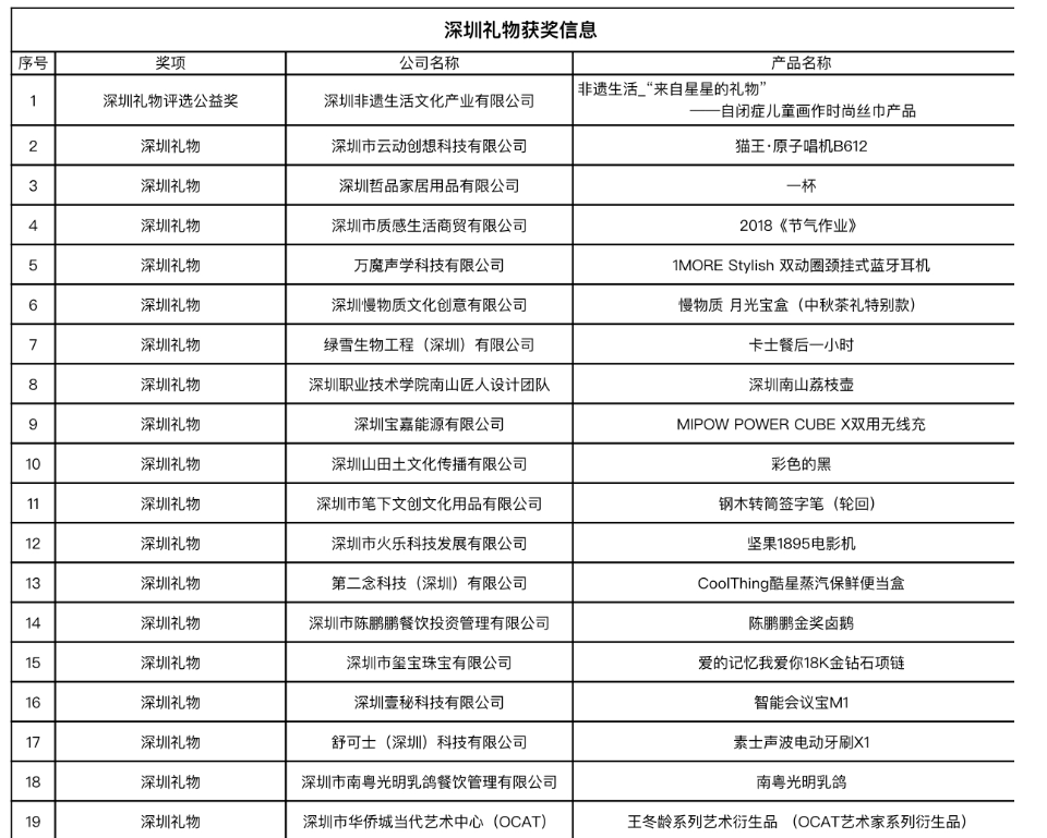 附:深圳禮物獲獎信息