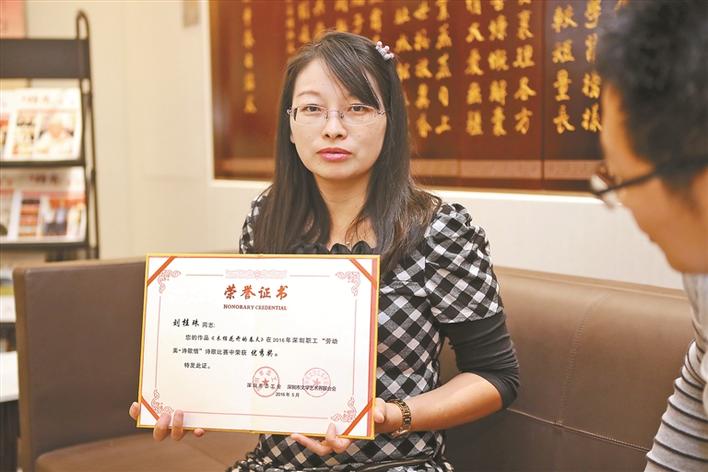 “近期,我剛剛加入了深圳市福田區(qū)作家協(xié)會(huì)?!眲⒐鹬楦嬖V記者,她從高中的時(shí)候就喜歡寫(xiě)作?!昂髞?lái),我來(lái)深圳打工之后,不管工作多忙多累,這個(gè)愛(ài)好都沒(méi)有間斷過(guò),一直堅(jiān)持到現(xiàn)在。它已經(jīng)成為我生命中的一部分了,可以說(shuō)是一種生活習(xí)慣?!?/p>