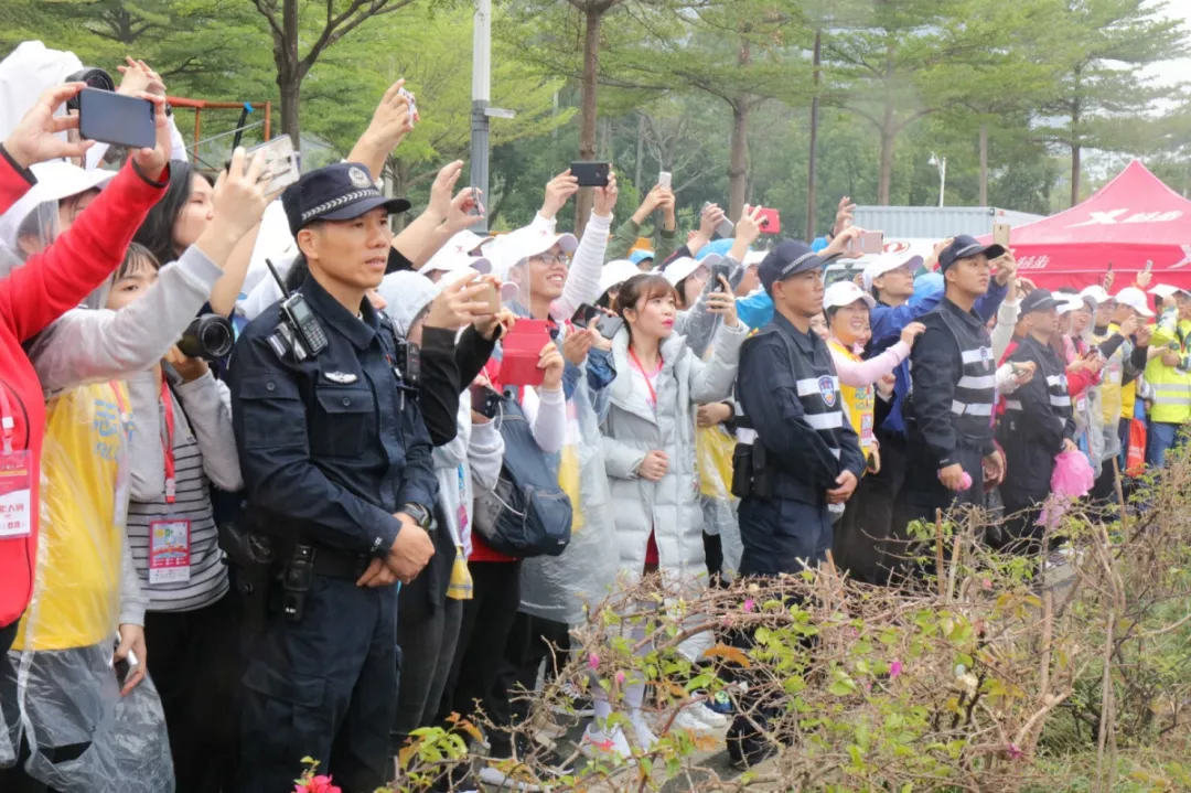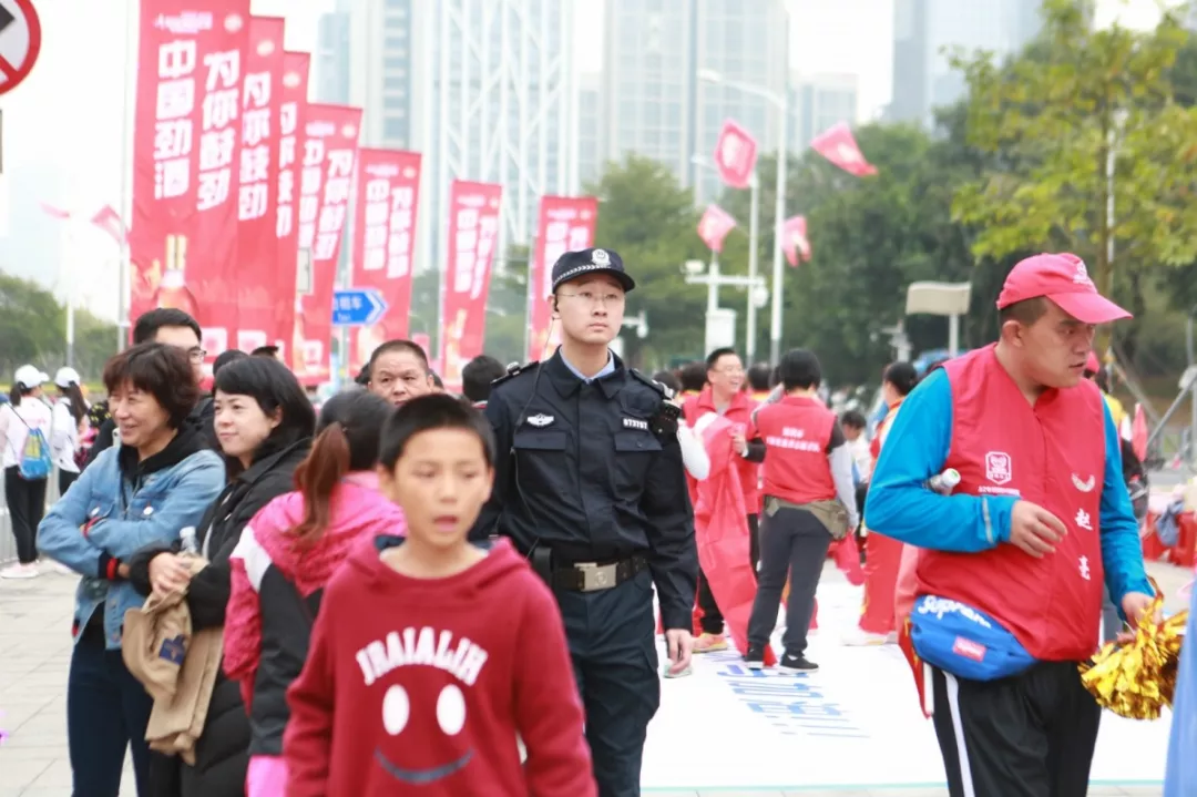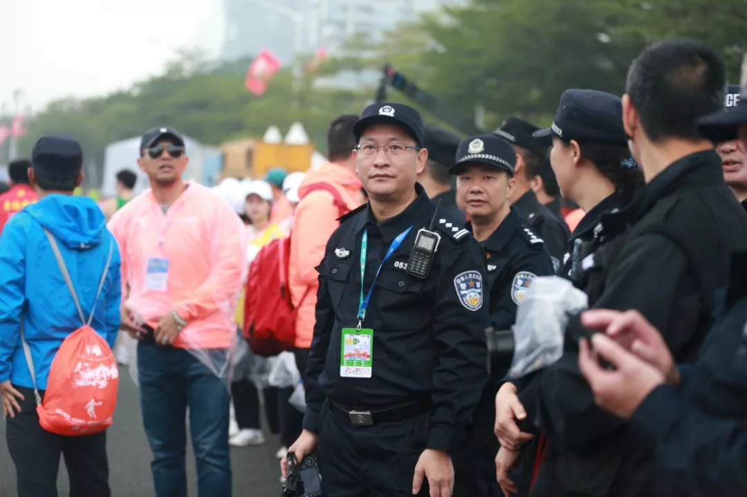 為全力做好此次馬拉松安保工作,福田警方提前謀劃、科學部署,承擔全程、半程馬拉松起點及6.2公里賽道的安全保衛(wèi),共出動警力1972人,啟用20套4G現(xiàn)場圖傳 “千里眼”,20套視頻識別探頭“守點”;警力實時定位系統(tǒng)、118個高低空視頻預案“守線”;71套現(xiàn)場視頻執(zhí)法記錄儀。從凌晨4點到下午2點,用長達10個小時的安?!榜R拉松”為賽事的順利開展保駕護航。