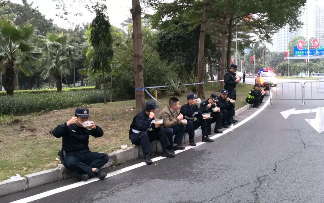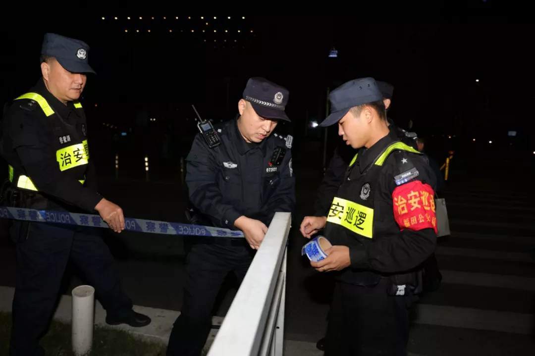 參戰(zhàn)民警、輔警們冒雨堅守,維護秩序