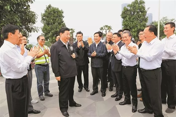 10月24日,習(xí)近平在廣東自由貿(mào)易試驗(yàn)區(qū)深圳前海蛇口片區(qū)考察。在前海石前,習(xí)近平同前海建設(shè)者和見(jiàn)證者代表同話(huà)滄桑巨變。新華社記者鞠鵬攝