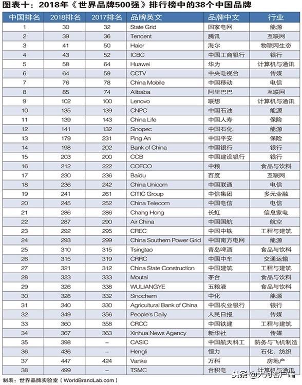 原標(biāo)題:世界品牌實(shí)驗(yàn)室發(fā)布2018年世界品牌500強(qiáng),中國38個品牌入選!