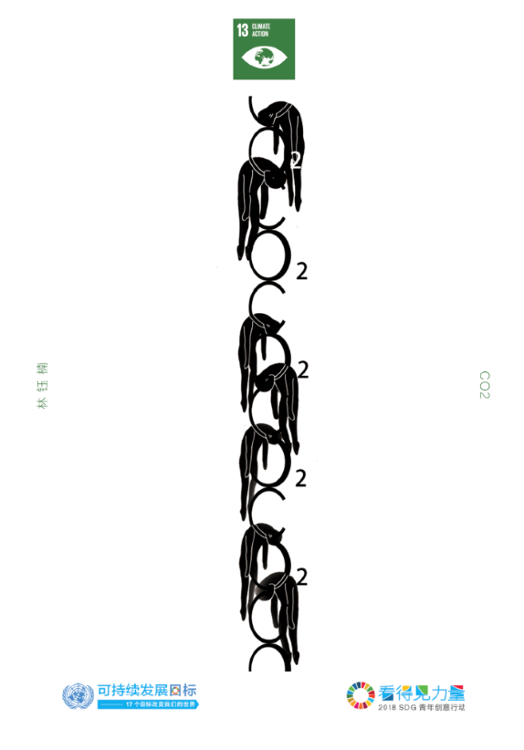 作品解釋 /海報(bào)的內(nèi)容是CO2形狀的繩索將人類吊起窒息而死的畫(huà)面以此呼吁人類重視二氧化碳問(wèn)題帶來(lái)的危害。