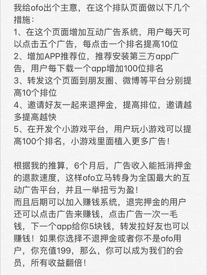 于是乎,就有人給ofo出主意了↓↓↓↓