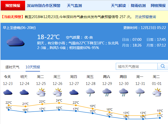 深圳新聞網2018年12月23日訊(記者 施冰冰)據市氣象臺發(fā)布消息,昨日深圳市國家基本站錄得最高氣溫26.9℃,為深圳近20年來最熱冬至。上一個更熱的冬至出現在1998年,最高氣溫27.7℃;歷史最熱冬至出現1992年,最高氣溫27.9℃。