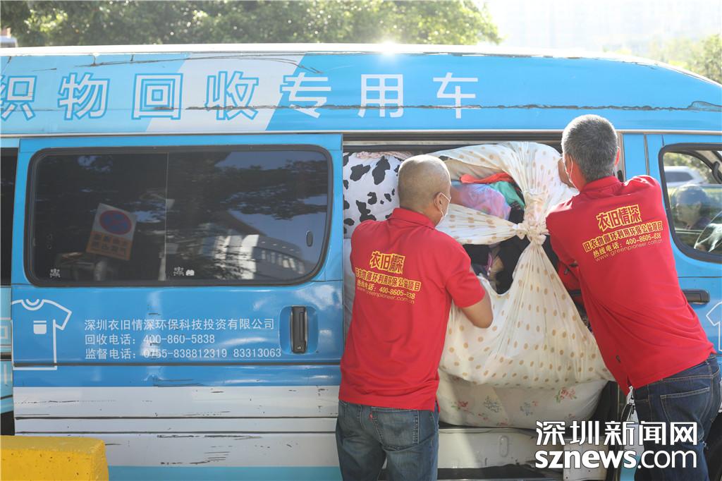 車停人下,工作人員打開(kāi)織物回收箱的鎖扣后,將平時(shí)回收的床單鋪在取衣口前,將市民投入回收箱的衣物放置在床單上。放置完成后,工作人員拍照打卡,并做好記錄,然后打好包后便塞入車中。據(jù)觀察,車輛僅前排可坐人,包含司機(jī)在內(nèi)只有兩個(gè)座椅,所有后座皆為衣物放置區(qū)域。