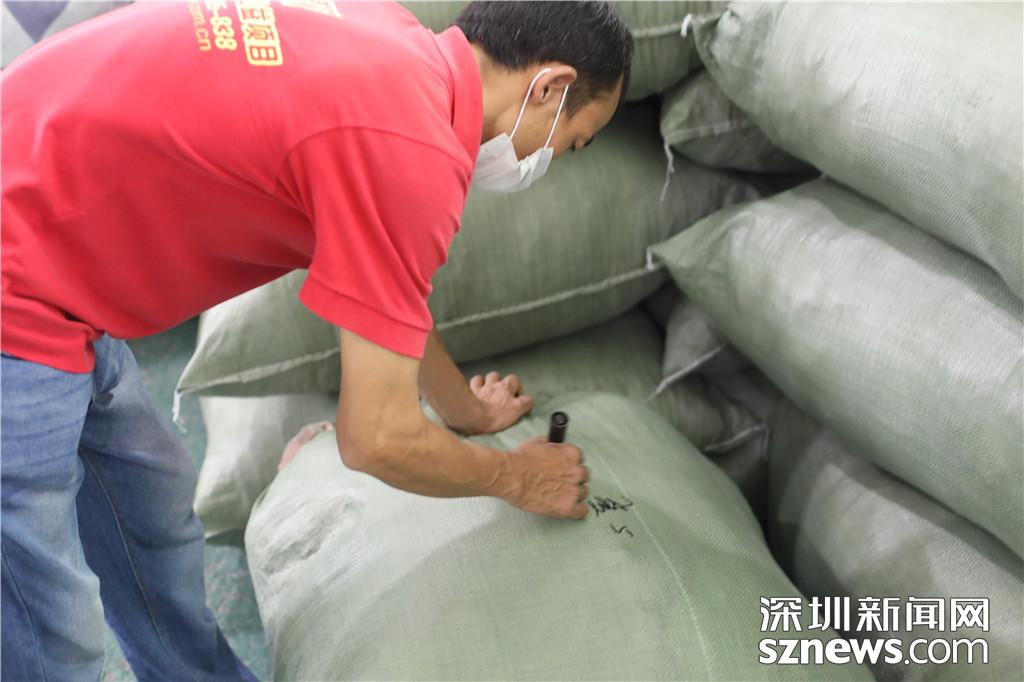 初步分揀工作完成后,另外的工作人員再從這些分揀筐中將符合民政部門捐贈要求的衣物選出放置在另外的分揀筐;在達到一定量時,工作人員再將分揀筐進行稱重,確認框內(nèi)衣物重量。對不符合要求的衣物,工作人員直接進行裝袋,并做好類別標識及當日時間記錄。