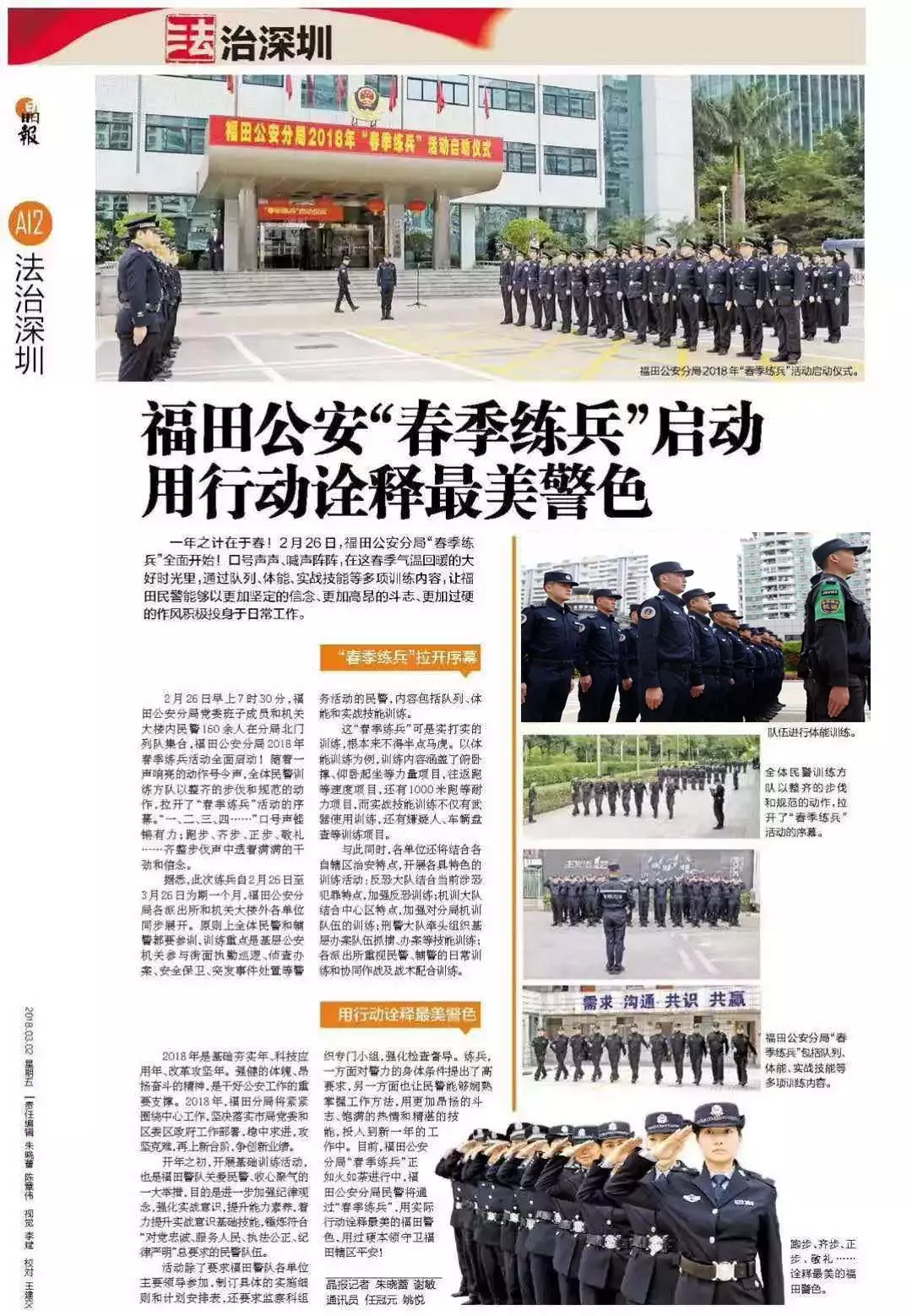 ★★強(qiáng)健的體魄、昂揚(yáng)奮斗的精神,是干好公安工作的重要支撐。2月26日早上,福田分局2018年春季練兵全面啟動(dòng),全體民警和輔警參加,重點(diǎn)訓(xùn)練隊(duì)列、體能和實(shí)戰(zhàn)技能。