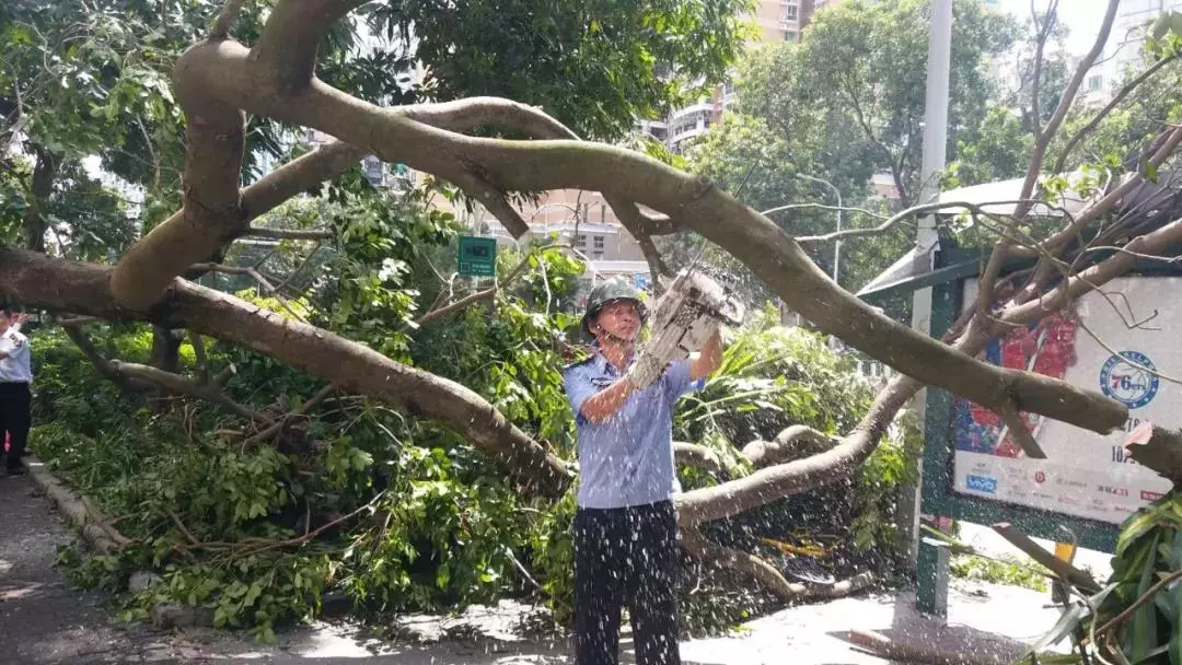 ★★深圳遭遇三十年來最強臺風“山竹”襲擊,景田派出所民警唐順華堅守景田獅嶺片區(qū),頂風冒雨搶險救災,處理倒伏樹木、清理路障,連續(xù)90多個小時沒有回家。