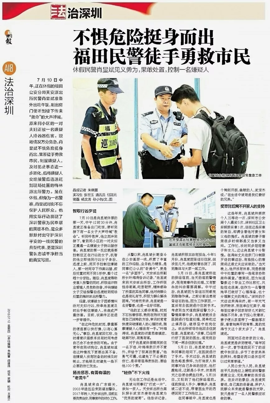 ★★天安派出所民警肖顯斌休假第一天,面對(duì)突發(fā)持刀行兇險(xiǎn)情,挺身而出,果斷處置,化險(xiǎn)為夷。英雄的壯舉并非偶然,源自平時(shí)工作的盡忠職守,源自人民警察的責(zé)任與使命。
