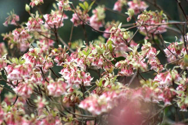 吊鐘花朵朵成束,好似鈴鐺吊掛,花粉紅白色,妖嫩媚人,晶瑩醒目,花期正值元旦、春節(jié),長期以來作為吉祥的象征,為嶺南鄉(xiāng)土名花。資料顯示,早在清代中葉,廣東一帶已有將吊鐘作為年花的習(xí)俗。清代屈大均的《廣東新語》記載:"吊鐘花并未折下,能耐久,臘冬多賣于街,土人市以度歲,取其置中不萎也。"吊鐘花紅的稱為"金鐘",白的叫做"銀鐘",朵朵彎垂,似無數(shù)的小鈴鐺在空中搖曳。古詩中所詠的"天香新綠一叢叢,金鐘深藏一片紅。風(fēng)吹銀鈴香陣陣,勝過百花鬧新春"就是對吊鐘花的生動寫照。