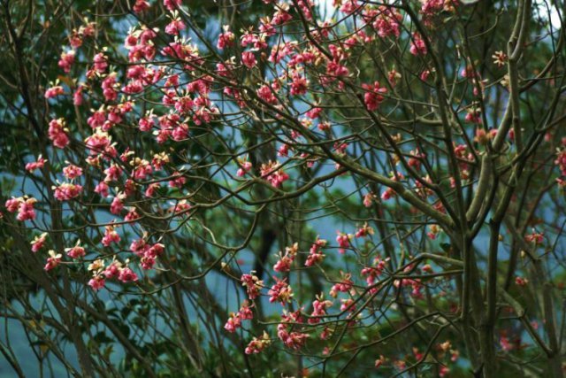 "這種花的特別之處在于先開花,后長葉。"梧桐山風(fēng)景區(qū)管理人員介紹,吊鐘花開花的順序也十分有趣。枝頭小小如嫩筍般的就是它的花苞。當(dāng)"嫩筍"每一片包片的邊緣開始變成紅色,"嫩筍"的頂部就開始綻開,第一朵風(fēng)鈴狀的小花從"筍"尖"破繭而出"。待第一朵花長好后,其他花方才陸續(xù)相繼開放。