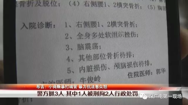 記者從中海醫(yī)院了解到,被打城管隊員徐濤右側(cè)腰兩橫突骨折。龍崗警方發(fā)通報,鑒定徐濤為輕傷,以涉嫌故意傷害罪,對光頭男子趙某青采取刑事強(qiáng)制措施,同時對其妻李某玉和女老鄉(xiāng)王某,以毆打他人處以行政處罰。
