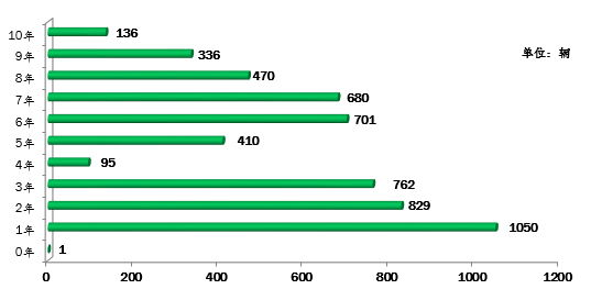 ▲行業(yè)教練車車齡統(tǒng)計(jì)圖(注:根據(jù)《機(jī)動車強(qiáng)制報(bào)廢標(biāo)準(zhǔn)規(guī)定》第五條規(guī)定:小型教練載客汽車使用10年)