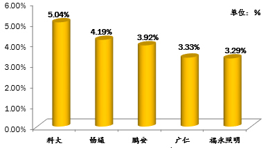第四季度教練員點(diǎn)評占比最高的前5名駕校分別為:科大、暢通、鵬安、廣仁、福永照明。