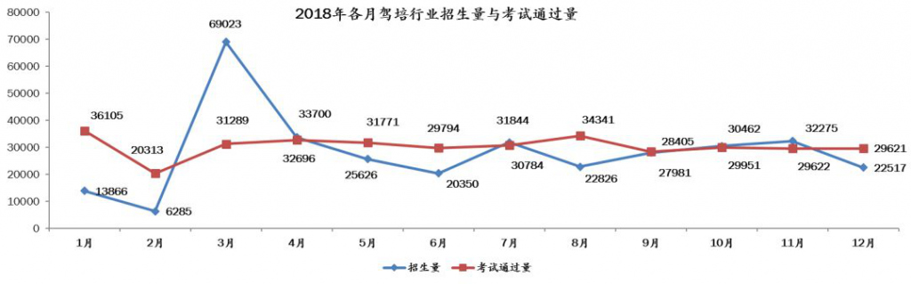 2018年全年行業(yè)累計(jì)招生33.7萬人,考試通過量共36.5萬人,累計(jì)考試通過量與招生量比值為108.3%。