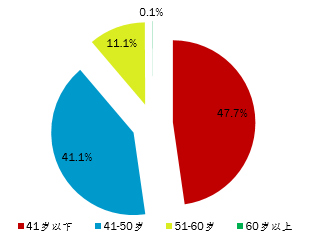 年齡方面,學(xué)員平均年齡為29歲,其中30歲以下的有24804人,占比56.5%;30-40歲的有16785人,占比38.2%;41-50歲的有2156人,占比4.9%,50歲以上的有157人,占比0.4%。