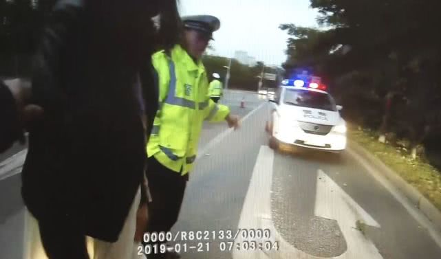 交警:來,酒精測試。最后一次機會,小姐。我現(xiàn)在警告你,再不配合立即去抽血,不要在這里裝,一堆人服侍你,如果你想上頭條,我配合你。