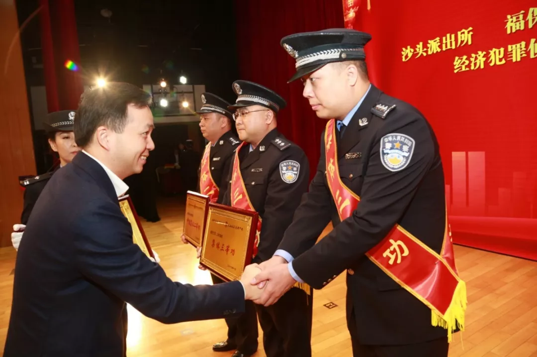 ▲副區(qū)長、公安分局局長段廷杰為嘉獎集體頒獎