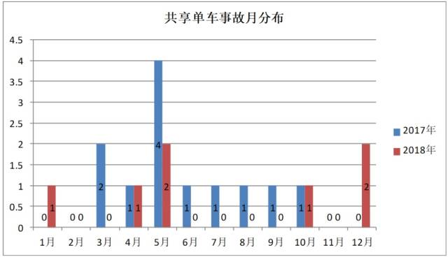 從事故多發(fā)月份來看,5月份是共享單車事故的高發(fā)月份,在2017年和2018年兩年中,五月份均是死亡人數(shù)最多的月份。兩年中,發(fā)生在5月份的事故死亡人數(shù)共6人,占總死亡人數(shù)的31.58%。