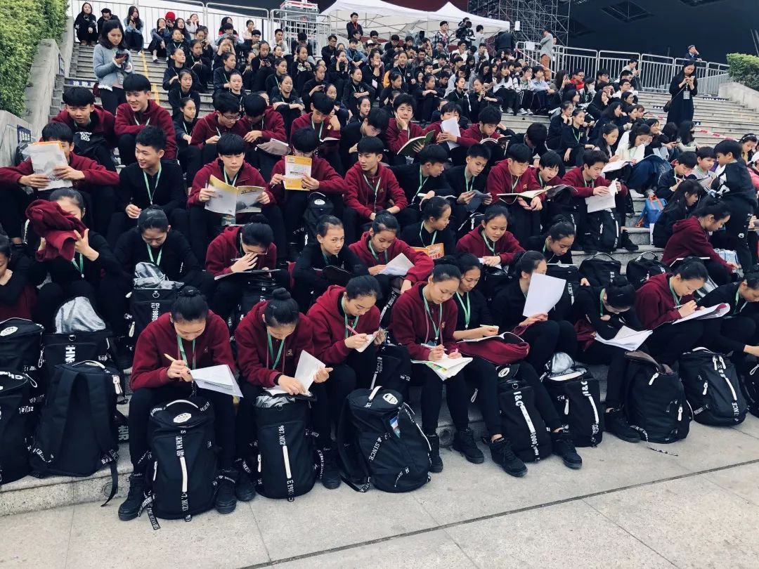 彩排階段,是深圳各中小學(xué)期末考試時(shí)間,學(xué)生們邊排練邊學(xué)習(xí),不誤期末考試,候場時(shí)時(shí)??梢钥吹酵瑢W(xué)們埋頭復(fù)習(xí)的場景,她們利用在訓(xùn)練期間短暫的休息時(shí)間,溫習(xí)復(fù)習(xí)資料和做課后作業(yè)。