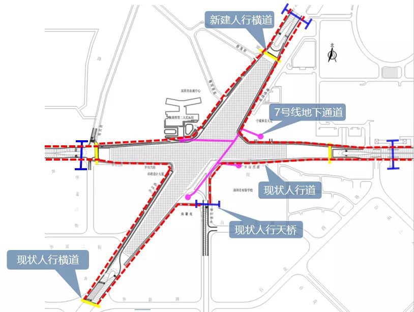 車行交通調(diào)整為:筍崗西路 -梅崗路;紅荔路 -皇崗路 -筍崗西路 -梅崗路;筍崗西路 -泥崗西路 -靜逸街(梅崗南街)。