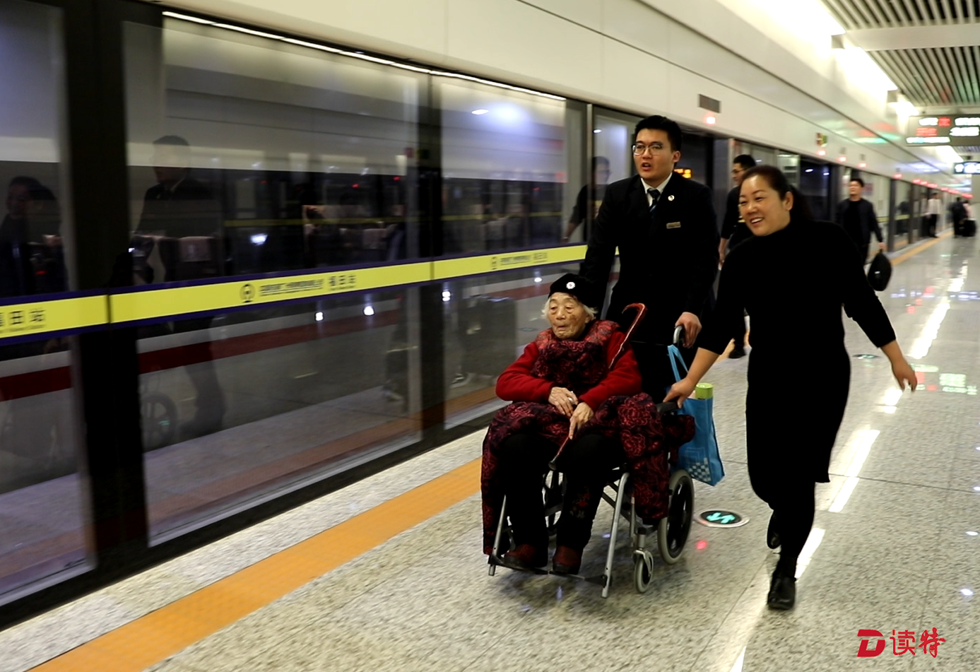 前兩天,站里剛剛接到過一位返鄉(xiāng)老人對(duì)李樹森的表揚(yáng)。70歲的旅客張爺爺帶著坐在輪椅上90多歲的老母親,在福田高鐵站坐高鐵回駐馬店老家過年,由于年紀(jì)太大又是第一次來到這里坐車,因此特別不知所措?!霸诤蜍囀?,小李一看到我們就主動(dòng)上來幫忙了,又是推輪椅又是拿行李,怕我們被擠到摔倒,帶我們提前走特殊通道檢票,一路把我們送上車。到了車上,他還專門叫來乘務(wù)員,仔細(xì)交代我倆的情況。如果沒有他,我們兩個(gè)老人家,這次都不知道能不能順利到家呢!”張爺爺在電話里感激地說道。