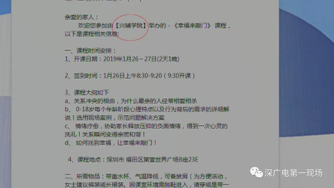 家長(zhǎng)們后來(lái)了解到,提供這次培訓(xùn)的機(jī)構(gòu)是一家名為興輔教育的機(jī)構(gòu),相關(guān)的課程是由學(xué)校引進(jìn)的。家長(zhǎng)們免費(fèi)參加的課程只是一階,也就是第一階段的意思。