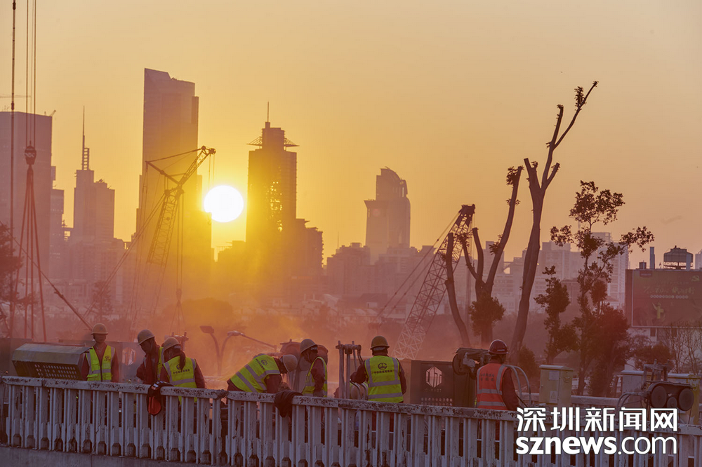 深圳新聞網(wǎng)2019年2月3日訊(記者 黃賢娟 趙穎致 黃婉婷 胡志方 林婉婷)與日漸冷清下來的街道商鋪不同,春節(jié)前夕的黃木崗立交仍是一片繁忙景象。這是2月2日傍晚,數(shù)百名身穿橙黃馬甲的工人正在忙著將立交橋切割分離。平板車、模塊車往來穿梭,將一塊塊拆卸下來的橋體陸續(xù)運(yùn)走。夕陽西下,橙黃色工服反射出點(diǎn)點(diǎn)熒光,成為安靜的城市中獨(dú)特的點(diǎn)綴。