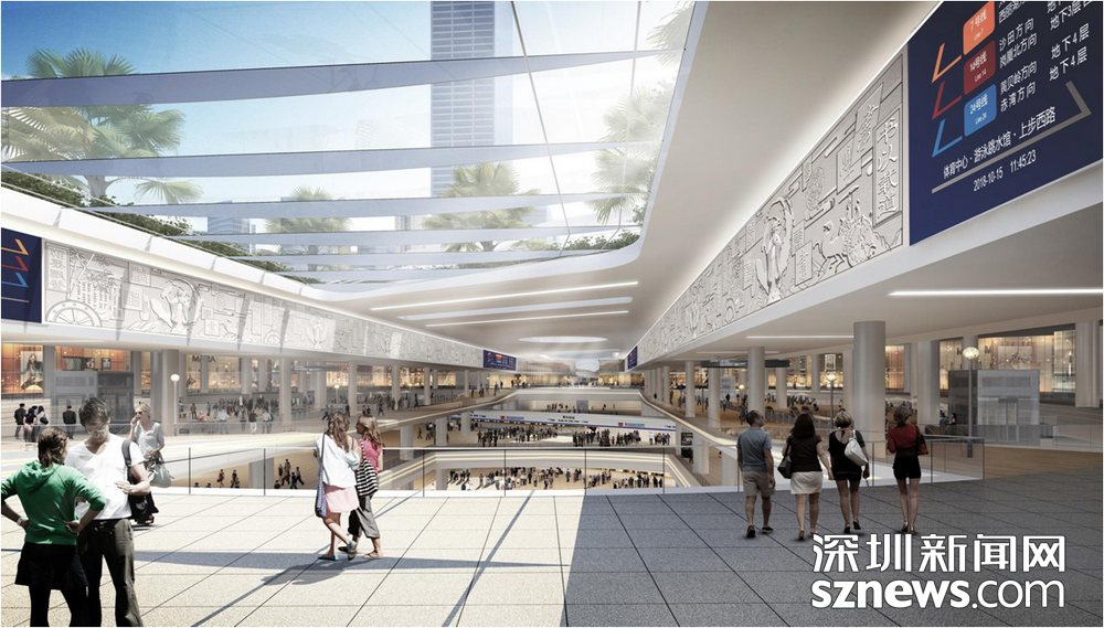 在此過程中,項目結(jié)合城市更新,以軌道交通為核心,通過5個軸帶有效連接體育中心、市二醫(yī)院、華富村、華強北商業(yè)街、筆架山公園、中心公園等多個城市區(qū)域,形成集多種功能為一體的綜合型城市地下空間新典范。