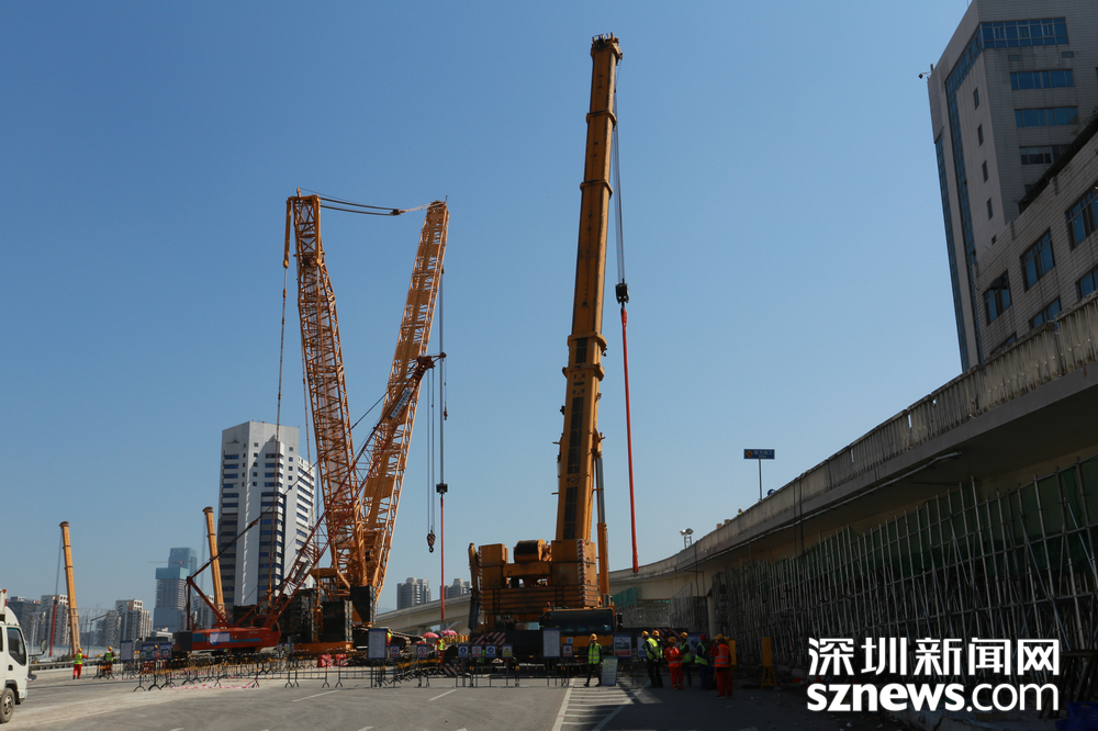 而正是為了達(dá)成20天拆除黃木崗立交橋的工程目標(biāo),將幾乎不可能的工程奇跡變?yōu)楝F(xiàn)實(shí),黃木崗立交拆橋工程專門配備了專業(yè)而龐大的施工陣容。不僅招攬了一批經(jīng)驗(yàn)豐富、技術(shù)嫻熟的建設(shè)人才,還大量引入SPMT模塊車、繩鋸切割工藝等國際先進(jìn)技術(shù)和設(shè)備??偣?500余人參與項(xiàng)目施工,進(jìn)駐900噸、750噸、600噸等起重機(jī)及模塊車、平板車等大型器械500余臺,組成了現(xiàn)場規(guī)模宏大的施工場面。