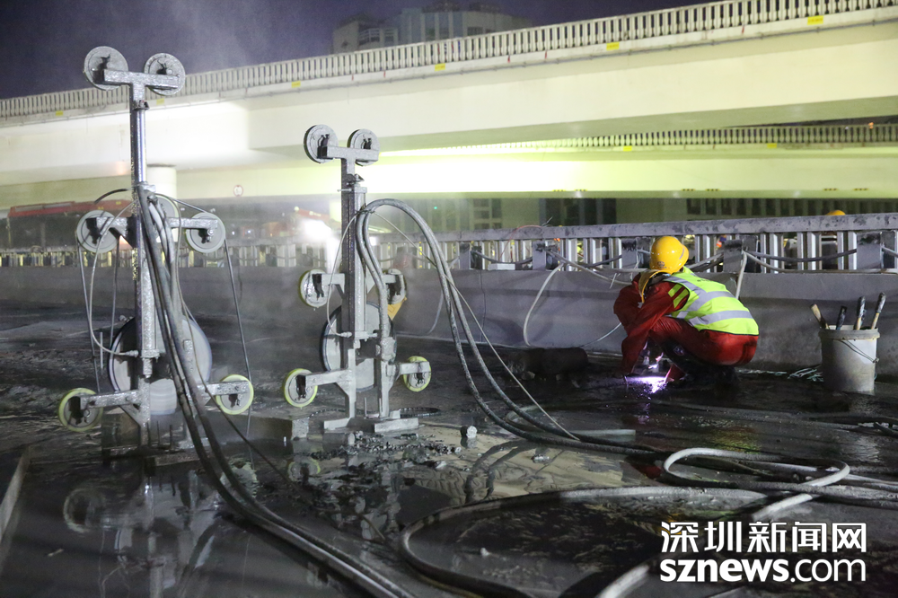 為了克服工程難點,經(jīng)過多方探討和研究,黃木崗立交最終決定采用多種工法相結(jié)合的方式進(jìn)行施工,即將箱梁按照方案切割成小塊,通過模塊臺車支頂切割后直接馱運(yùn)、模塊臺車支頂切割后吊運(yùn)、滿堂支架支頂切割吊運(yùn)3種方式拆運(yùn)。其中,模塊臺車運(yùn)輸采用的是目前國內(nèi)外最先進(jìn)的拆運(yùn)設(shè)備——SPMT模塊車?!斑@種車無人駕駛、遙控指揮,可以自由組合、360度旋轉(zhuǎn),載重量大,適合運(yùn)輸大體積的梁塊?!敝需F隧道局項目設(shè)備負(fù)責(zé)人沙平平介紹道,此次拆運(yùn)過程中,最大的一塊梁體重達(dá)460噸。