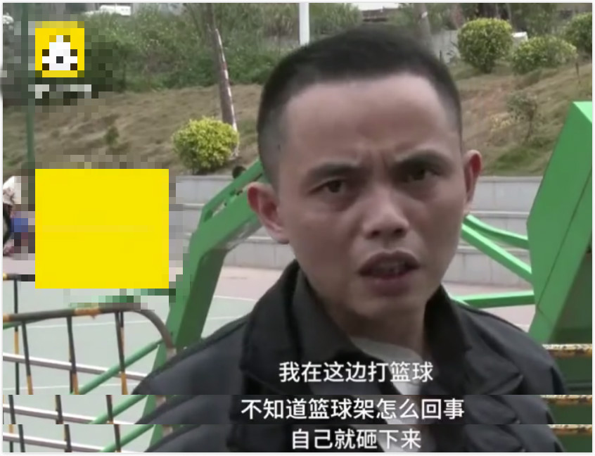 據(jù)何先生回憶,當時他正在打球,籃球架不知何故,"自己就砸下來",導致其當場昏迷、鎖骨骨折。從現(xiàn)場拍攝的視頻中可以看到,倒塌后的籃球架框嚴重變形,幸好與其一同打球的三四個球友合力將他從籃球架下抬出來,并撥打了120。