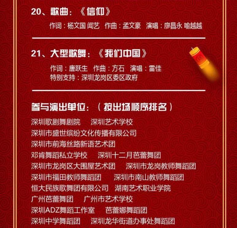 “擁抱春天——2019中央廣播電視總臺春節(jié)聯(lián)歡晚會深圳分會場節(jié)目展播暨深圳春節(jié)聯(lián)歡晚會”(以下簡稱“深圳春晚”)將于明晚21:00在央視綜藝頻道和深圳衛(wèi)視同步播出。